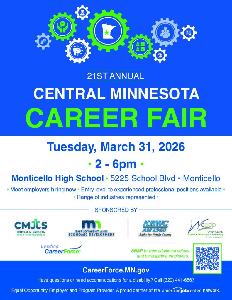 MN DEED, CareerForce – Central MN Jobs & Training Services & Wright County Economic Development Partnership